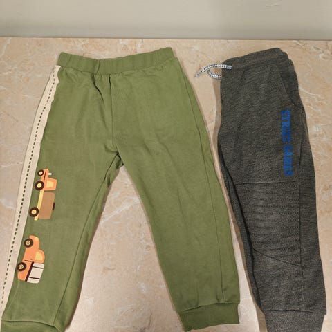 Väri haalistunut jonkin verran, etenkin polvista, mutta ehjät edelleen. Nauhat vyötäröllä, niiteistä hieman maali lähtenyt.