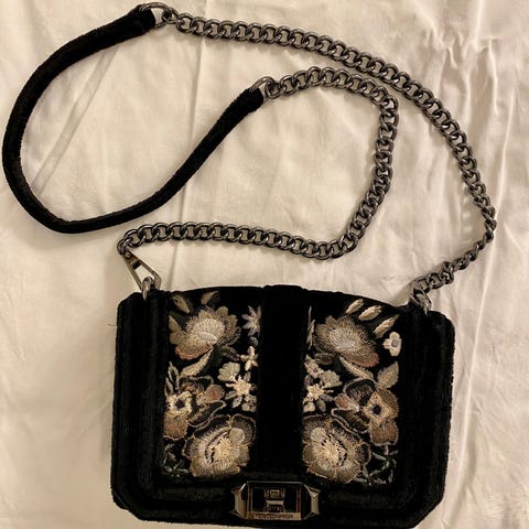 Rebecca Minkoff Kultainen kimalteleva nahkainen iltalaukku tyylikäs juhlalaukku