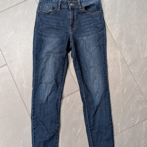 Käyttämättömät, Vilan siniset joustavat farkut. Koko L, mutta sopii paremmin M-kokoiselle.