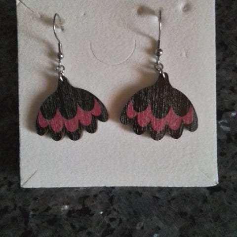 Vaaleanpunaiset puiset design korvakorut, käyttämättömät.