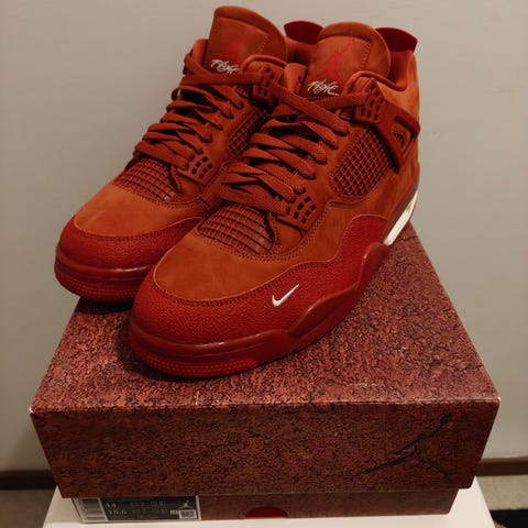 Käytetyt Air Jordan 4 Retro Nigel Sylvester Brick by Brick kengät 45EU / 11US, putsattu säännöllisesti ja pidetty siistinä. Mukaan kuitti ja kenkälaatikko, nouto tai postitus/Tori-diili!
