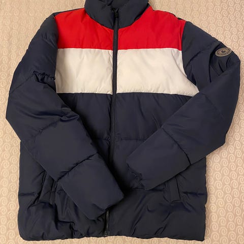 Jack & Jones Core miesten toppatakki, L koko, aika pientä mallia. Ollut käytössä lukioikäisellä yhden talvikauden. väriltään beessi-musta. Takissa on vetoketjukiinnitys, huppu ja vetoketjutaskut.