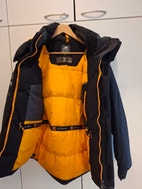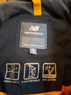 New Balance Talvitakki miesten koko M, väri musta ja keltainen. Ulkotakki, jossa hengittävä ja mukava materiaali. Takissa on X2000-heijastimet näkyvyyden parantamiseksi. Takissa on vetoketjulliset taskut ja irrotettava huppu.