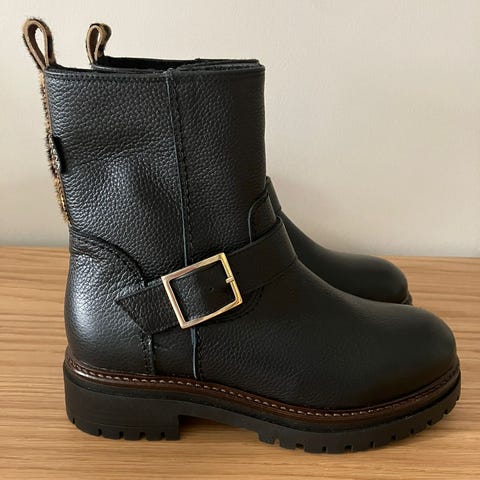Uudet, käyttämättömät kiiltonahkaiset talvikengät. Pehmeä, lämmin vuori. Sivussa vetoketju ja edessä nauhat. Paksut, pitävät pohjat.