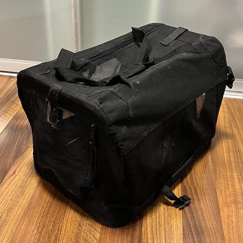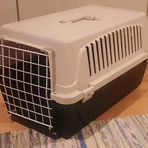 Pienelle lemmikille kuljetuskoppa. Voi laittaa autossa turvavöihin sivussa olevien lovien kautta ja/tai laittaa kantoremmin.