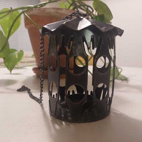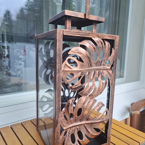 Nopea nouto muuton tieltä. Korkeus 25 cm, leveys 17 cm kansi.