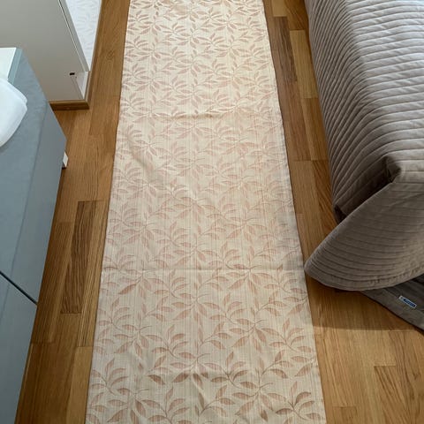 Tampellan verho. Voi käyttää myös pöytäliinana. Toisesta reunasta hieman haalistunut.