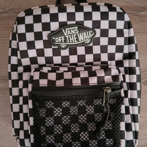 Musta VANS (off the wall) Ward Cross Body vyölaukku, jossa on yksi suuri päälokero, pienempi vetoketjutasku edessä ja toinen vetoketjutasku sisällä. Valmistettu 100 % polyesteristä. Korkeus 7 cm, leveys 18 cm, syvyys 4 cm. Runsaasti säätövaraa hihnassa. Täysin ehjä & siisti. Ei kotieläimiä taloudessa.