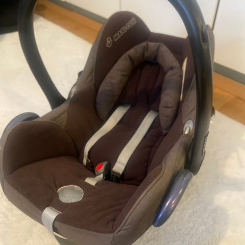 Maxi-Cosi turvakaukalo, musta väri, soveltuu lapsille enintään 13 kg painoisina. Varustettu turvavöillä ja kantokahvalla.