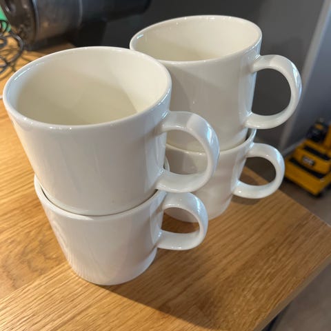 Hyväkuntoiset Teema-kupit, joista kolmesta kulunut tehtaan leima pois. Naarmuttomat ja siistit silti.