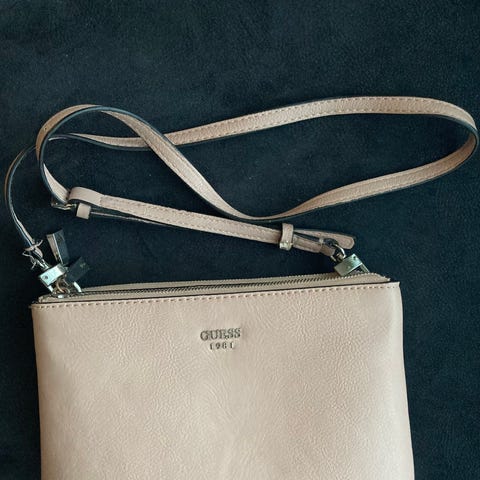 GUESS nahkainen olkalaukku naisille. Laukussa on kaksi vetoketjutaskua, joissa on tilaa henkilökohtaisille tavaroille ja keskellä ilman vetoketjua tila. Olkahihna säädettävissä.