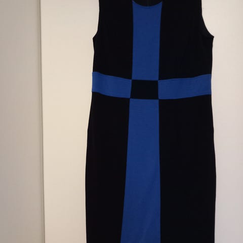 Voglian mallistossa vuosia ollut klassikkomekko sähkön sinisenä. Virheetön kunto. Torson päällä nyt ei näytä läheskään siltä miten säpäkkä tämä on 🙂