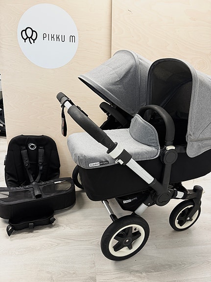 Tulossa myyntiin huippusiistikuntoiset Bugaboo Donkey3 Duot mustalla rungolla ja mustilla kankailla. Mustissa kankaissa ei näy poikkeuksellisesti värin haalistumaa, vaan ovat täysin mustat. Nahkaosat turvakaarissa poikkeuksellisesti täysin virheettömät, työntöaisan nahkaosassa vasemmalla puolella pientä tyypillistä kulumaa, johon saa meiltä erikseen tilattua uudet aitonahkaiset suojat. Juuri kuntotarkastetut.