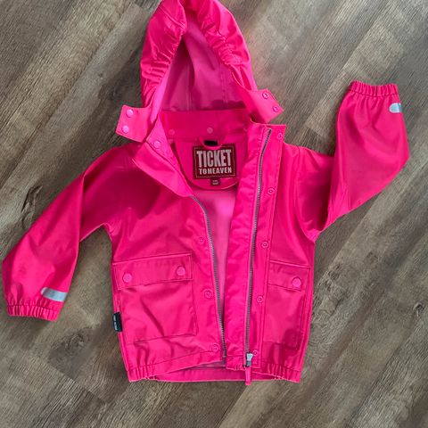 Hyväkuntoinen sadetakki, nepparit edessä. Koko 98.