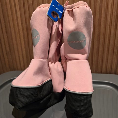 Topatut tossut ulkokäyttöön. Sisällä fleece, päällä vettä hylkivä materiaali. Savuton ja eläimetön talous.