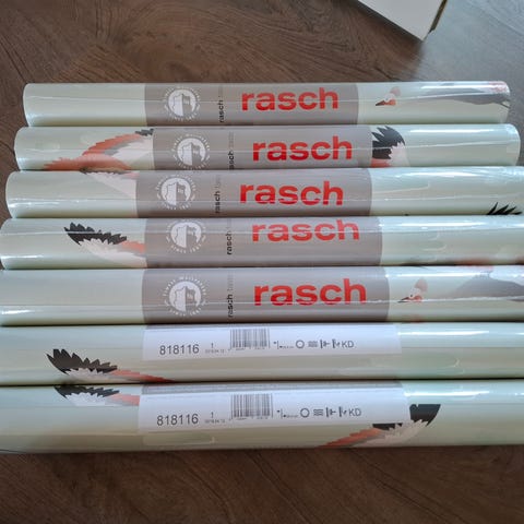 Rasch 459111 lasten kuitutapetti, jossa pöllökuvio. Mitat 0,53 metriä leveä ja 10,05 metriä pitkä. Värit ovat neutraaleja ja tapetti soveltuu lastenhuoneen sisustukseen. Rullat avaamattomia ja ovat samasta erästä.