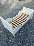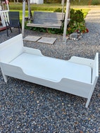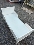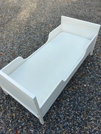 Tästä erittäin siisti massiivipuinen juniorisänky. Pituus 160cm, leveys 70cm. Erittäin siisti patja mukaan. Patjan päällinen pesty.