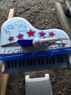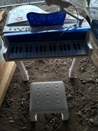 Bontempi Lasten sähköpiano varustettuna mikrofonilla ja jakkaralla. Väri sininen. Sopii lapsille musiikin harjoitteluun ja leikkiin.