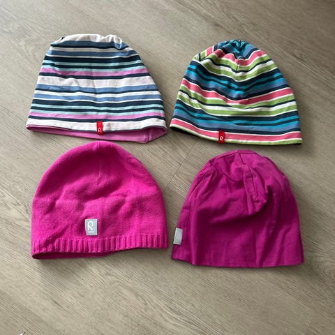 Myydään paketti pipoja ja hanskat. Reima-pipo kokoa 54, hanskat 6-8 vuotiaille. Loput pipoista one size kokoa.
