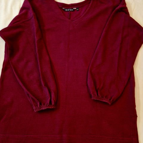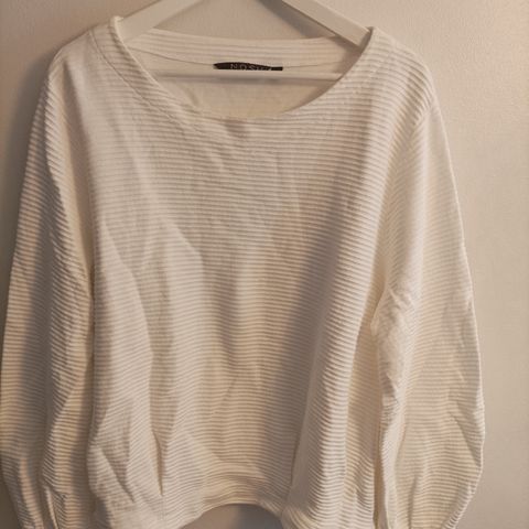 Uusi, valkoinen, Nosh, lievästi pussihelmainen pusero/ paita / t-paita. Istuu kauniisti. Kuminauha myös hihansuissa, mutta hyvin löysät, eli ei kiristä.