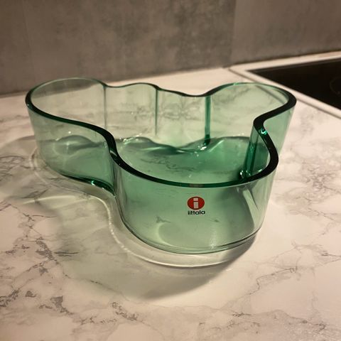 Myyn Iittalan koivunvihreän tarrallisen Aalto maljan uuteen kotiin. Pohjassa Alvar Aallon signeeraus. Nouto tai postikulut hinnan päälle.