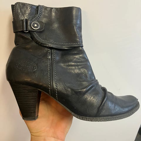 Marco Tozzi nilkkurit mustaa nahkaa, koko 39. Kengissä on koristeelliset niitit sivuilla ja matala korko. Sopivat monipuoliseen käyttöön.