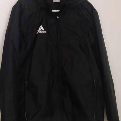 Myydään hyväkuntoinen Adidas Originals -tuulitakki, klassinen musta malli valkoisilla kolmiraidoilla hihoissa.