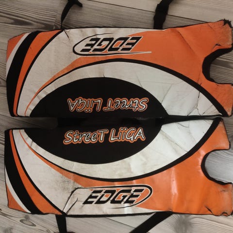 Reusch Maalivahdin Säärisuojat mustassa värissä. Säärisuojat on suunniteltu maalivahdin käyttöön ja ne tarjoavat suojaa sääriin. Materiaalit ja koko eivät ole erikseen määritelty kuvien perusteella.