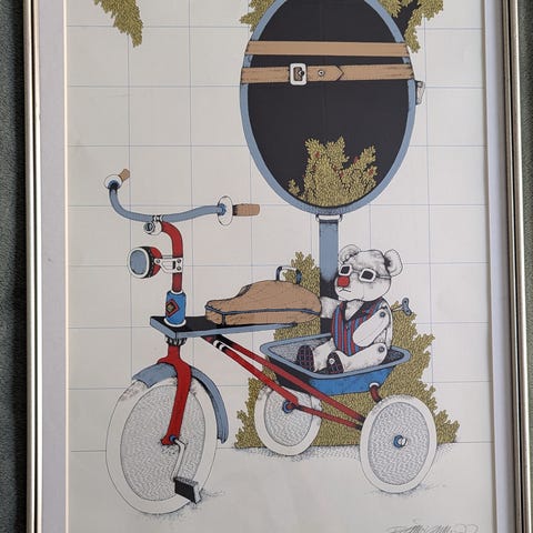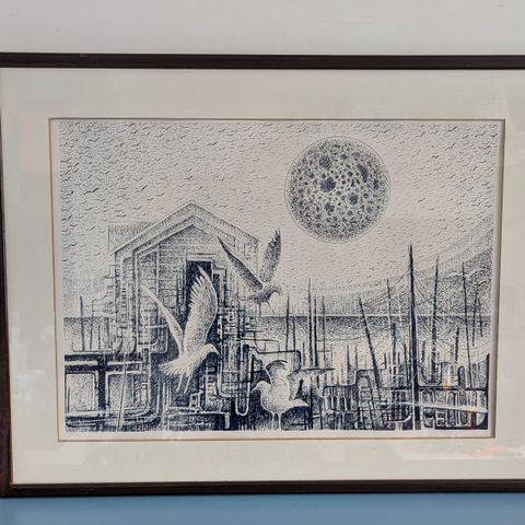 Teoksen alla merkintä tpl'a eli kyseessä taiteilijan itsensä tekemä vedos. Lisäksi numerointi 11/150 sekä taiteilijan signeeraus ja vuosiluku -77.