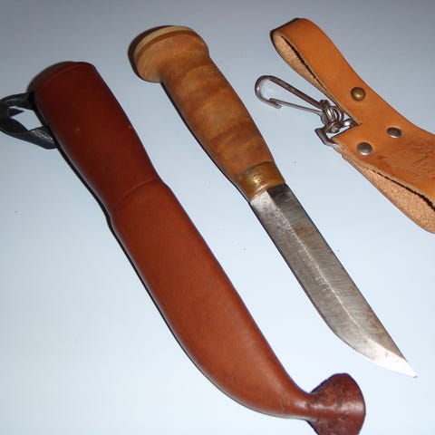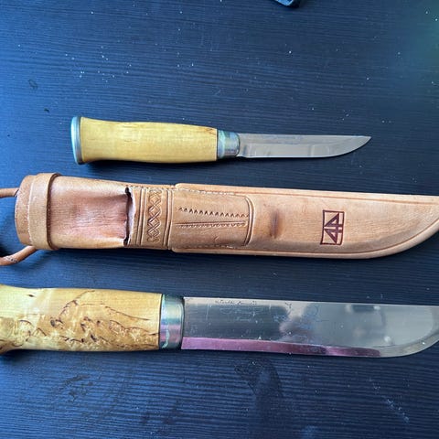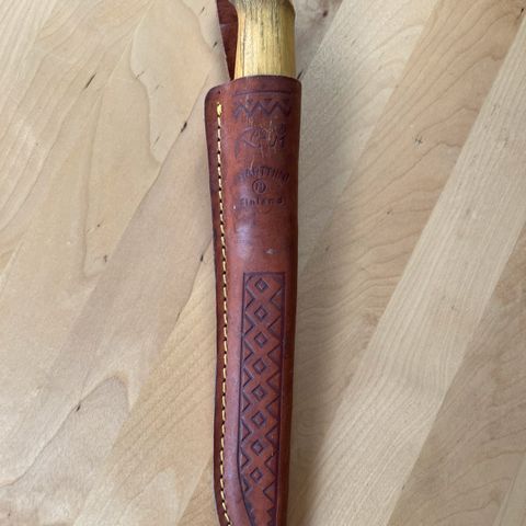 Uusi, puukko tupella avaamattomassa pakkauksessaan.