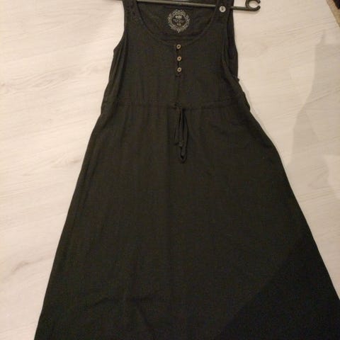 ESPRIT juhla- tai cocktailmekko, koko XS, väriltään tummansininen. Mekossa on puolipitkät hihat ja vetoketju takana. Nahkasomisteet.
