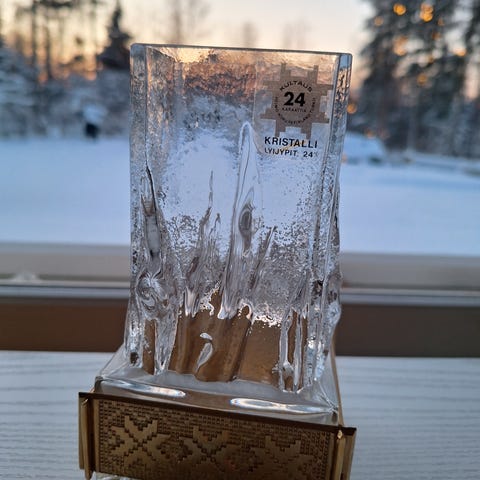 Hyväkuntoinen kullattu maljakko, Eino Wänni, Liekki, Humppila.