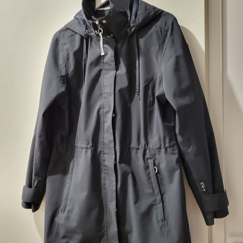 Ahkka áphiTec5.5 pitkä tekninen joustava kuoritakki naisille, koko 46, sininen/siniharmaa väri. Takki on valmistettu teknisestä áphiTec5.5 -materiaalista, joka tarjoaa suojaa sateelta ja tuulelta. Takissa on vetoketjulliset taskut ja säädettävä huppu. Soveltuu ulkoiluun ja päivittäiseen käyttöön.
