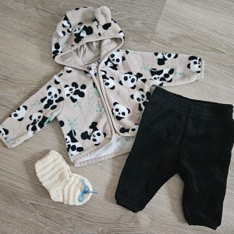 Uutena ostettu yhden lapsen käyttämä peuhun fleecetakki ja housut. Koko 50. Käytetty kunto.