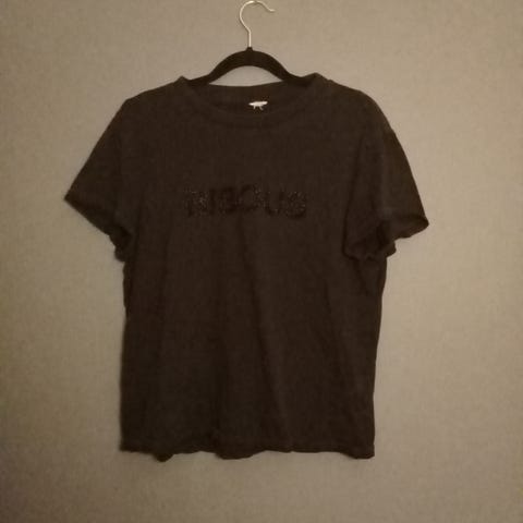 H&M Wednesday T-paita mustassa värissä, koko S. Siisti ja hyväkuntoinen, printissä paikoin pientä halkeamaa. Printin alapuolella kaksi pientä tahraa, näkyy kuvassa 4.