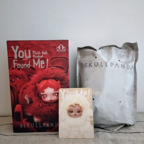 Myynnissä Sneaky Chestnut -hahmo Pop Martin uudesta Skullpanda: You Found Me (2025) -sarjasta! Ostettu Pop Martilta. Hahmo avaamattomassa pussissa. Laatikon pohjasta kurkattu sisältö. Pohjan saa halutessaan takaisin kiinni. Mukaan saa hahmon, boksin, kortin ja pussin.