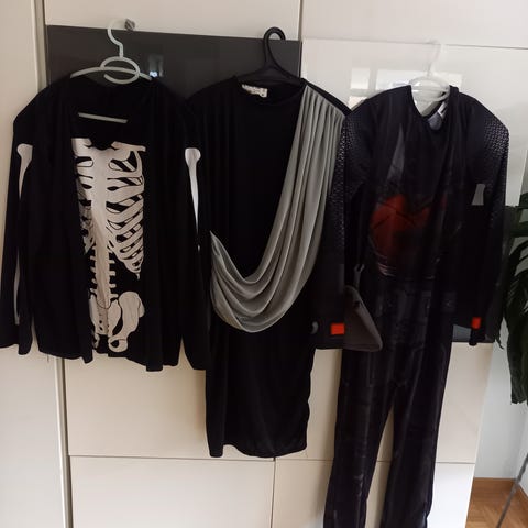 Lisäksi muita asuja Halloween, Starwars, Fortnite, useita kokoja, peruukkeja, naamareita, huppuja, sarvia, päähineitä ja muuta rekviiittaa, katso viimeiset kuvat ja muut ilmoitukseni tai laita viestiä.