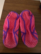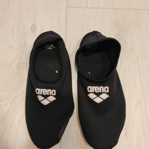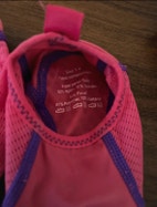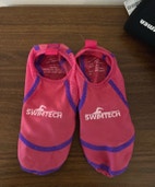 SwimTech uimasukat, koko 1-4 (33-37). Ollut käytössä henkilöllä kengänkoko 37. Väri pinkki ja violetti.