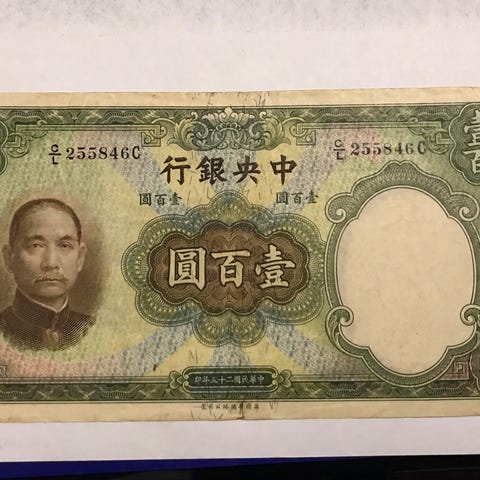 Japanin sotilaskäyttöinen 100 jenin seteli historiallinen
