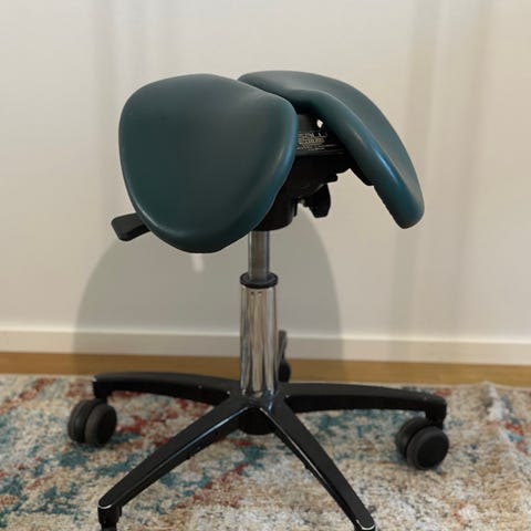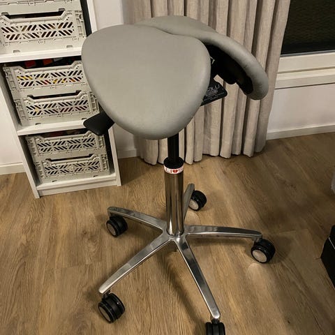 Myydään itselle tarpeettomana erittäin vähällä käytöllä ollut täysin uudenveroinen ja virheetön Salli-satulatuoli. Malli Twin. Väri musta nahkaverhoilu ja kromattu jalusta. Uuden hinta 1459 eur.