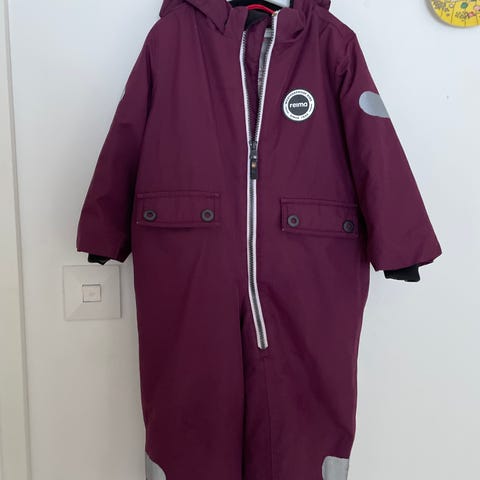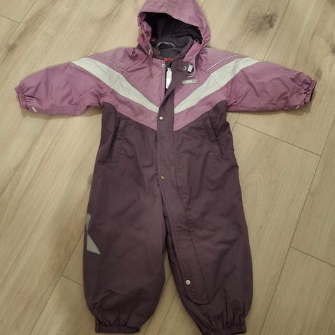 Reimatec vuoriton välikausihaalari, koko 92. Polvissa vähän haaleaa tahraa (kuva 3). Jalkalenksut puuttuu, napit kiinni.