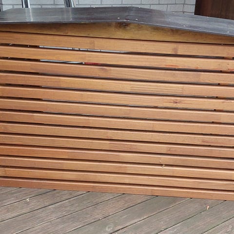 Myydään ilmalämpöpumpun suoja kehikko. Mitat sisä: Leveys:88cm Syvyys:54cm Korkeus: 65/75cm. Tehty itse kunnon puusta.