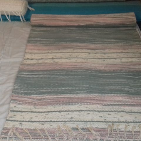 Myydään pesulahinnalla vähäisessä käytössä ollut sini-valkosävyinen, puhdas ja hyvässä kunnossa oleva kuviomatto. Hinta 20euroa.