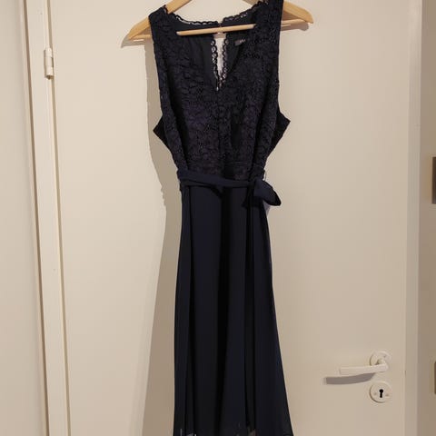 Myydään todella kaunis tummansininen yhdet juhlat juhlittu Espritin pitsimekko. Kokolapussa XL, mutta vastaa mielestäni enemmän L-kokoa.