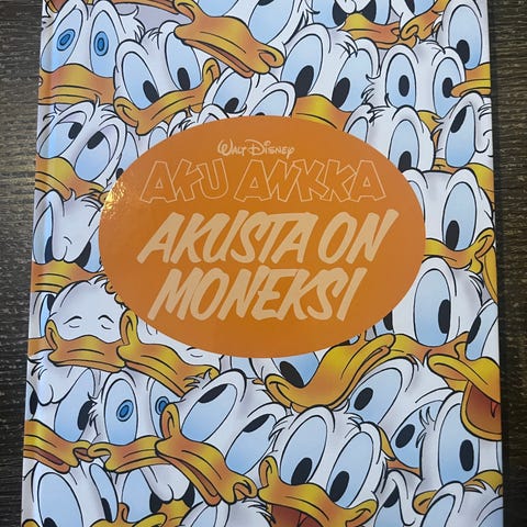 Myynnissä kuvan kovakantinen Aku Ankka ja Suomi sarjakuvakirja. Kunnoltaan täysin uudenveroinen.