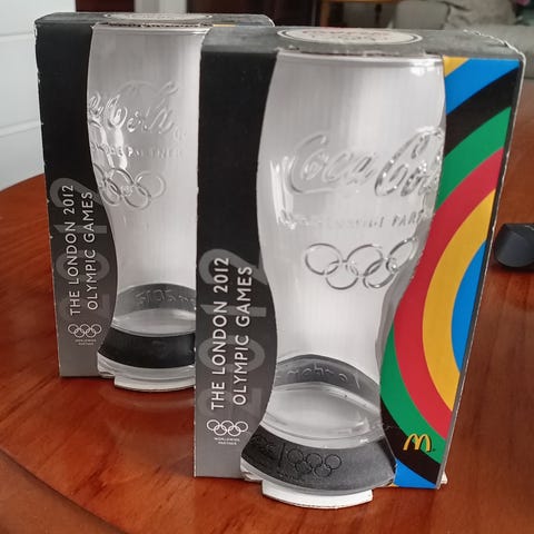 Coca-cola olympia lasi Lontoo 2012 yhteensä 6 kpl, myydään myös yksitellen hinta 5 € kpl.