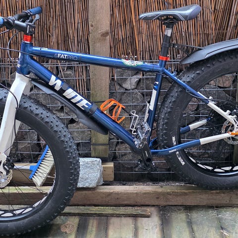 Alumiinirunkoinen fatbike Manitou joustokeulalla, hissitolpalla ja crankbrothers polkimilla.