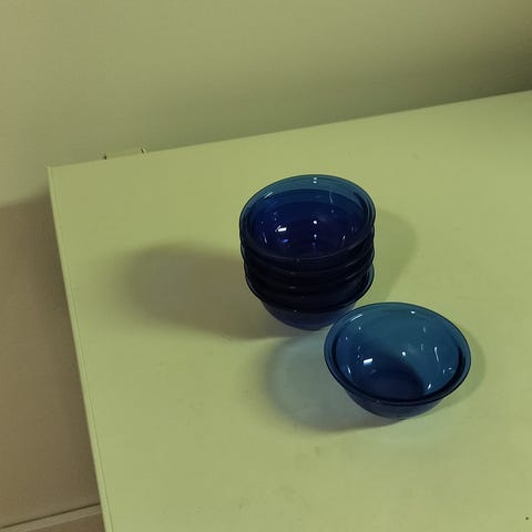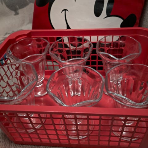 Täysin uutta vastaavat 1970 luvulta olevat Italialaiset jäätelömaljat 6 kpl. Korkeus 15,5 cm ja suun halkaisija 9,5 cm. Kaikkien hinta yhteensä 15 euroa.
