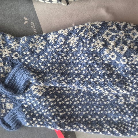 Kauniit polvipituiset kirjoneulesukat. Käsinkudotut. Kissa ja koiratalous. Nouto tai postitus.