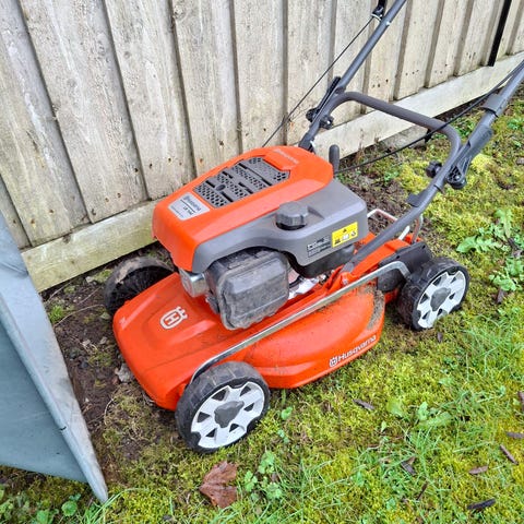 MTD päältäajettava ruohonleikkuri punaisella värillä. Laite on tarkoitettu pihan ja puutarhan töihin. Kuvissa näkyy koneen moottori ja runko, joka on käytetty ja osittain purettu. Sopii korjaajalle tai varaosiksi.